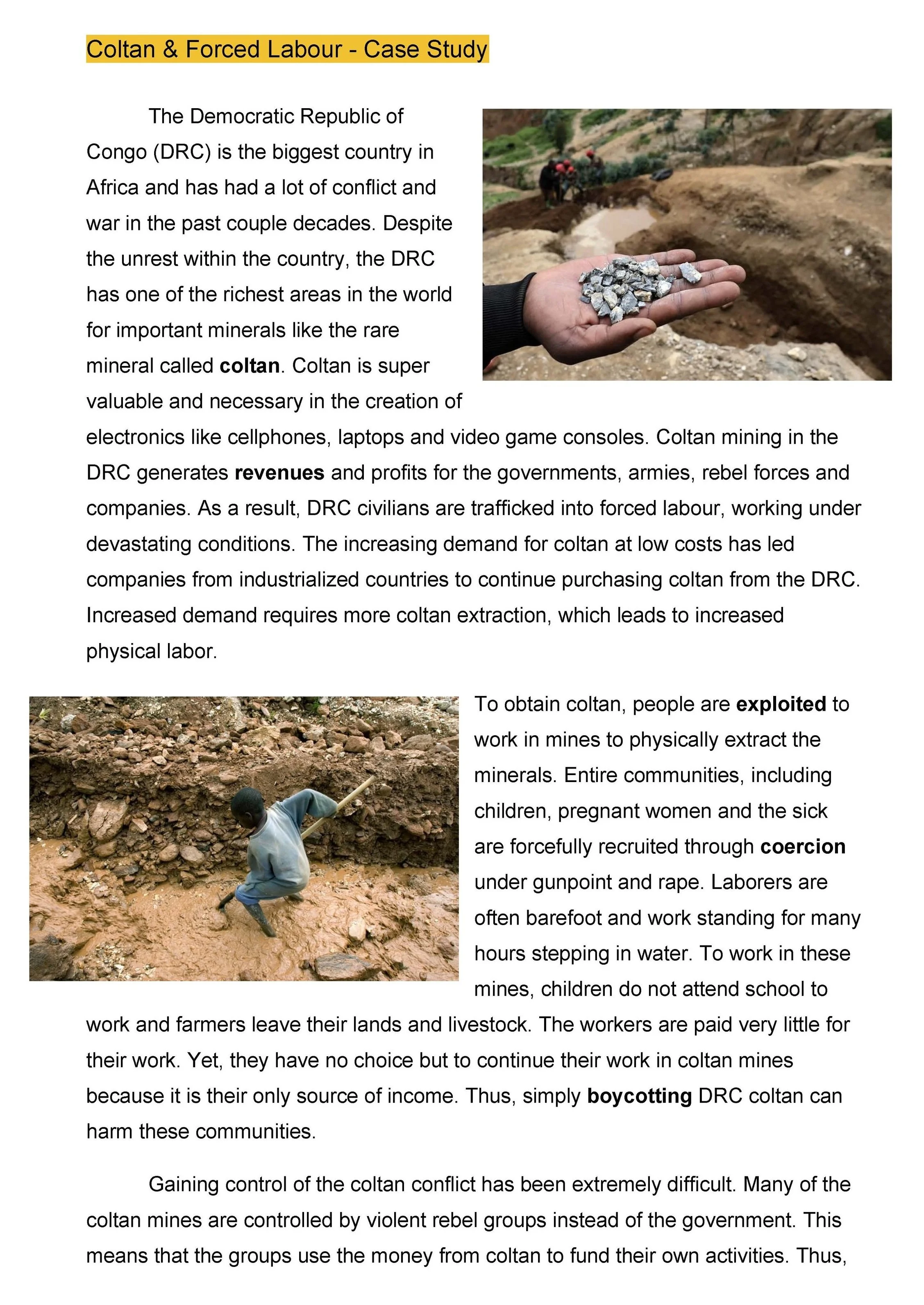 Sample page from a case study on the mining of Coltan and Forced Labour in the DRC. Full document here.