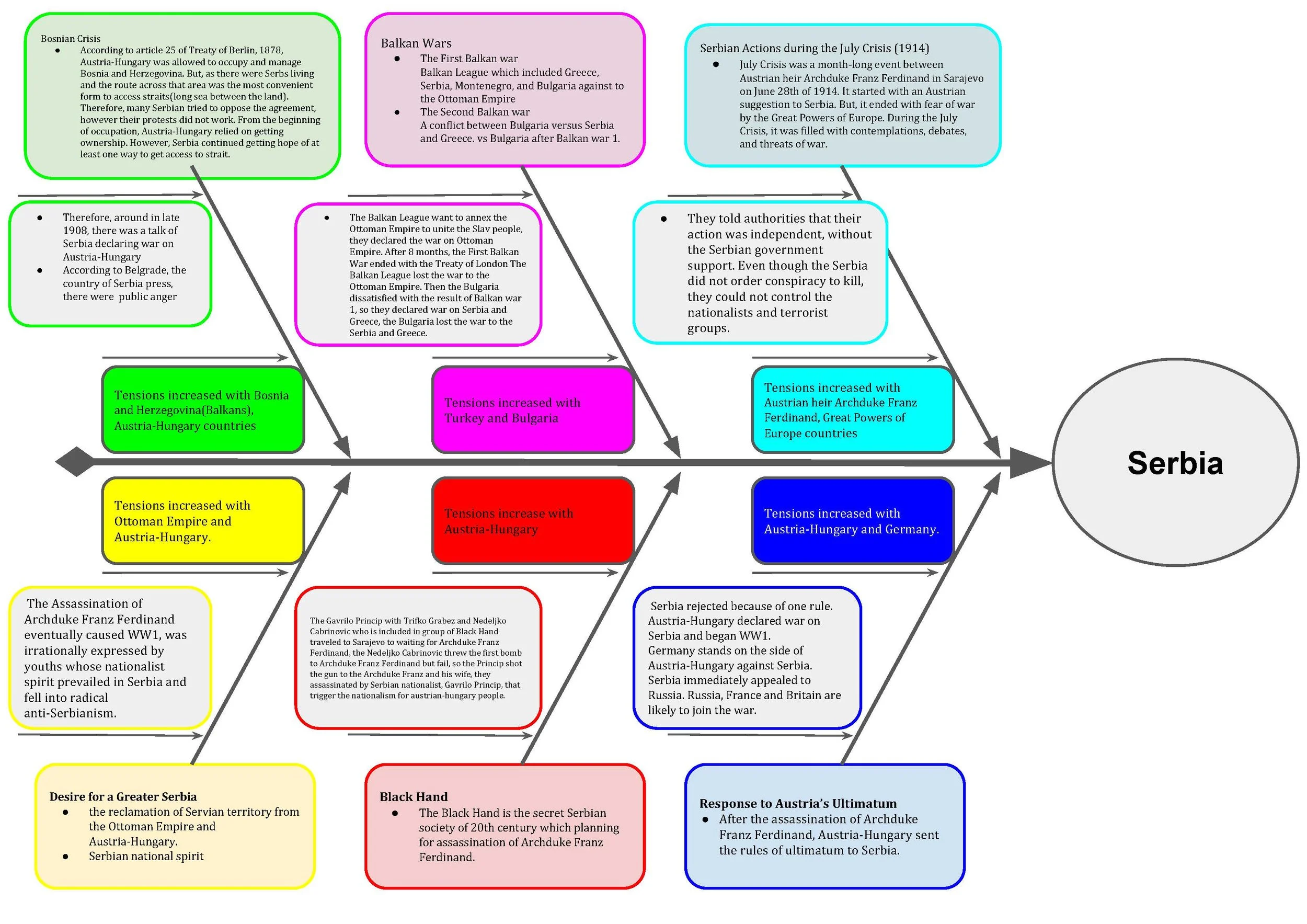 Through using the fishbone, students were forced to think about the repercussions of the events and points they were using as evidence blaming their designated country. In order for the event to fit, they had to describe what happened, then outline the effect of those actions as well as how that influenced tensions between countries. In many discussions and sorting of evidence, teams were able to weed out the weakest arguments or points that didn’t actually help to prove that their country is guilty.